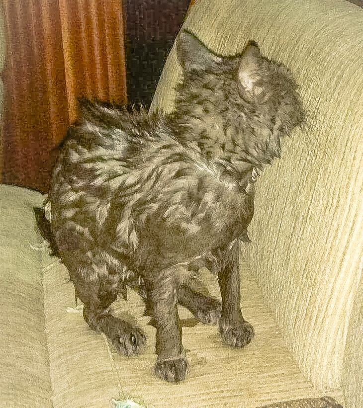 Then someone they called Captain America put me under a shower thing and washed me down with all nice clean water, then he got a towel and dried me and dried me, he rubbed and rubbed which I really liked very much, that made me purr so I deliberately shivered a lot to make him rub me some more. It was frightening being in the water when I didn’t know what to do. But Captain America knew just what to do, he dried me all over until Spiderman pushed him away saying it was his turn too. I purred ever so loudly and then that Cat Woman, she purred too. Batman came by to say he’d saved my life and could I mention him in my story. Robin was there and he asked if there was anyone I knew who could help me escape back to England. I told him that nobody loved me and hardly anyone cares, Robin said that happens to him all the time too. Then that Cat Woman hissed at me and I ran to hide under the carpet.