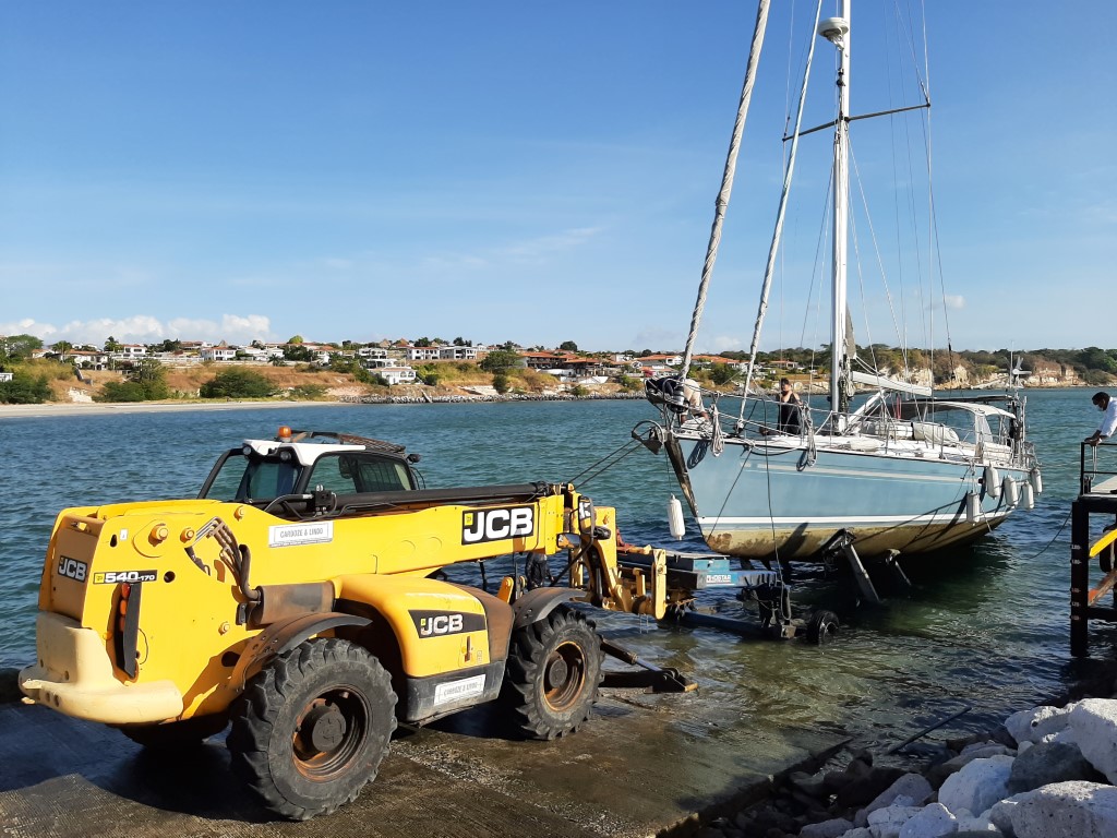 The offending fitting was one of four located in the old toilet heads we no longer used since we turned the heads into a wet locker for our foul-weather gear. It was our intention to swap out the unused thru-hull fittings which were all closed but seized through marine hull-growth – it seems that marine growth had broken the hull seal of the thru-hull. We had planned to haul Sänna out of the water in Vista Mar to do this and other work when first arriving there, but quickly decided it was too dangerous and high risk to haul out. A number of boat owners in the region warned us of previous misadventures when being hauled in the marina, particularly vessels of over forty-foot in length. In the event, frantic middle-of-the-night phone calls between here in England and Panama saw Ollie admirably arrange everything to get Sänna out of the water onto the hard.