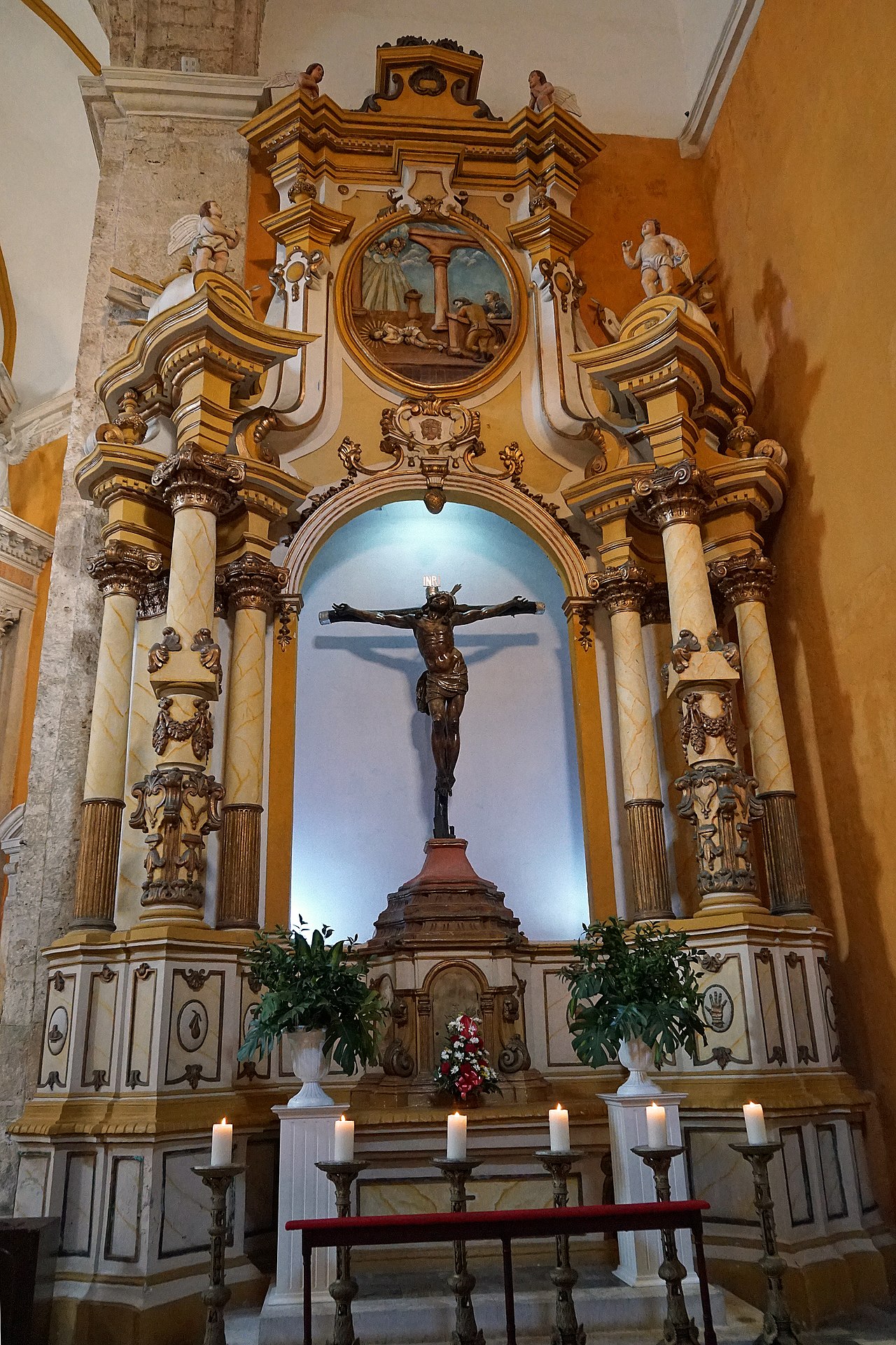 By now we were good friends with Patrick & Sheila, also with the Australian yacht tied next to them, Brett & Mandy on Clipper. Brett & Mandy had been in Cartagena a while, around four months and had even travelled around Colombia. They knew Cartagena well – let’s go to the historic Old Towns, they said. We had another sleepless late-night extravaganza, not in anyway like the two overnight rough-sea passages we had from the San Blas. Cartagena is a former Spanish colony, the main port of departure to Spain throughout the sixteenth and seventeenth centuries for plundered Peruvian silver. Founded in 1533, Cartagena de Indias was also where enslaved Africans were landed to forge the infamous wealth of the burgeoning Spanish new-world empire. The fate of transported Africans is a frightful tale alongside that of the indigenous Amazonians, who themselves suffered untold misery from deadly European diseases and brutal slavery. Cartagena thrived, its merchant riches demanding the same defensive walls that every other Spanish settlement needed to protect the inhabitants from rampaging English and Dutch privateers – the same royalty-sponsored pirates who were beginning to establish their own Caribbean plantations unscrupulously stocked with transatlantic slaves. Eleven kilometres of stone fortifications were planned around Cartagena in 1586, completed in several stages with a second fortification started in 1631 that continued to be built for another two-hundred years. The extensive walls created two distinct localities that are today designated as historic old towns by UNESCO, El Centro and San Diego – the poor working class who lived outside the city gates and the prosperous traders who lived within the safety of the walled city. Constructed in 1549 and still surviving to this day is the magnificent Iglesia de San Pedro Claver, a baroque style church dedicated by the friars to christian teachings of the Dominican order. On the highest hill of the Cartagena mainland, overlooking the city, is the Convento de Santo Domingo, the construction of which began in 1578 – one-hundred and fifty years later work was still being completed.