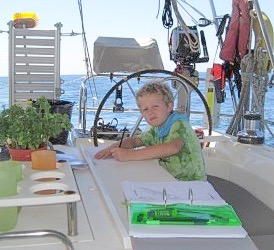 Like all children of his age his nemesis is his education. Schooling has always been rigidly maintained to a daily structure onboard to provide his educational needs, he has undoubtedly thrived from this experience. Mixing the daily routine of schooling and a ‘Swiss Family Robinson’ lifestyle gives my boy the unique life experience that surfaces in his confident character and his easy, humorous personality. His ability to mix with adults and children is a special skill he has developed.