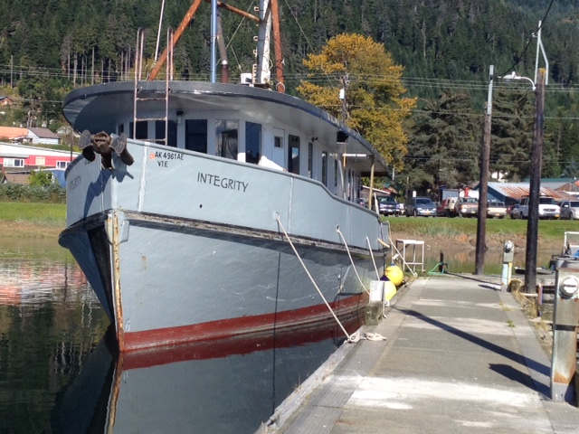All our old friends from Hoonah were still around and we met up with Tom & Juanita from Island Rover once again. And a real bonus for us in that the fishing boat Icy Queen followed us into Hoonah just a few days afterwards and it was simply fantastic to meet up again with Scott and his son Bradon with their little Scottie dog Henry… their Henry and our Henry got along just too fine. Also in town were the infamous Brown family, the so called stars of Discovery Channel’s reality TV show Alaskan Bush People. Their rather ramshackle vessel Integrity is moored close by and we again got talking to them just like last year when we were hauled out alongside them in Hoonah boatyard. A wacky family and a strange TV show but they’re friendly enough. We get on with them ok… we think Henry has a soft spot for Raine and Snowbird!
